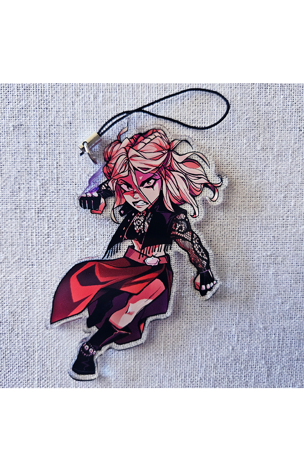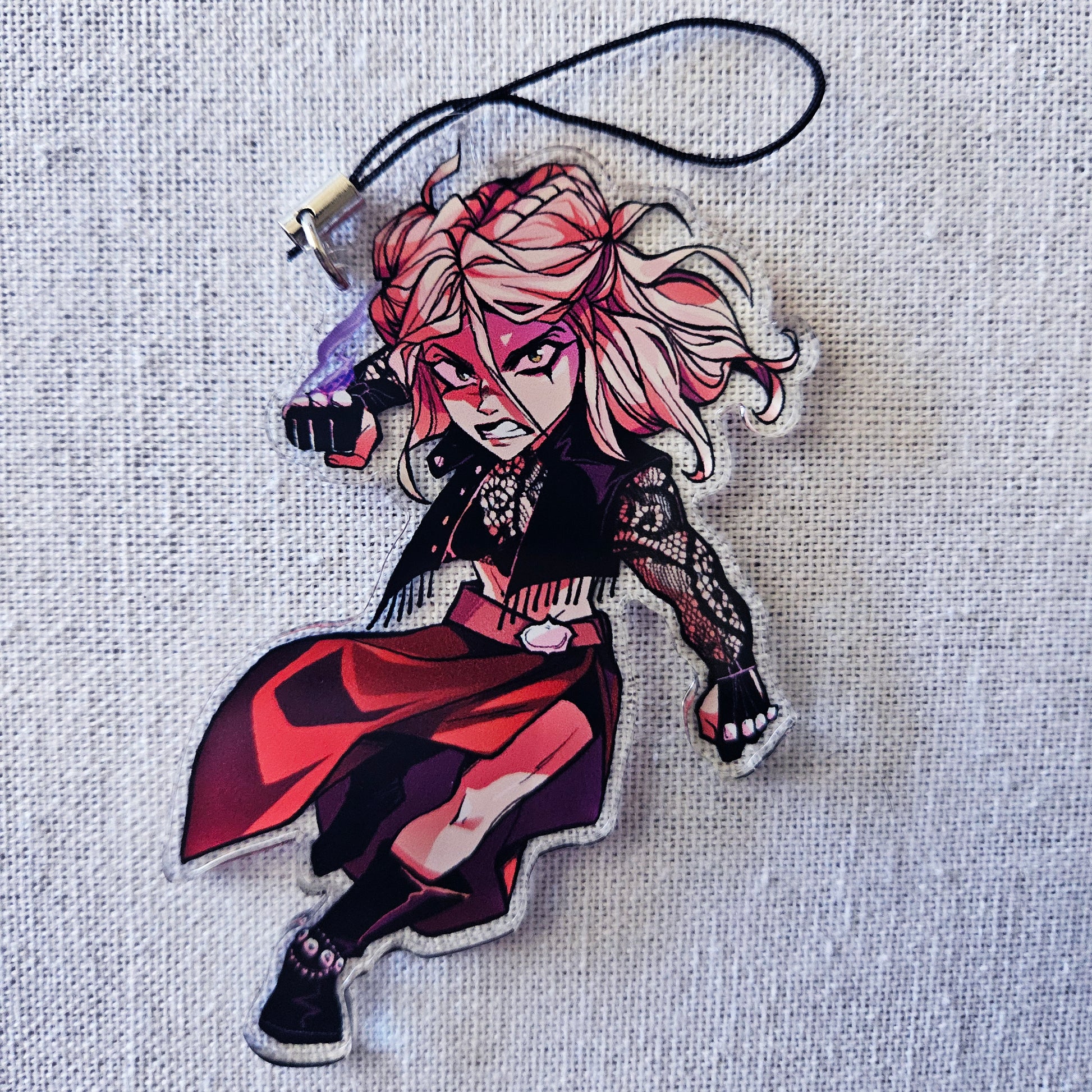 Double sided acrylic charm with cell-phone attachment