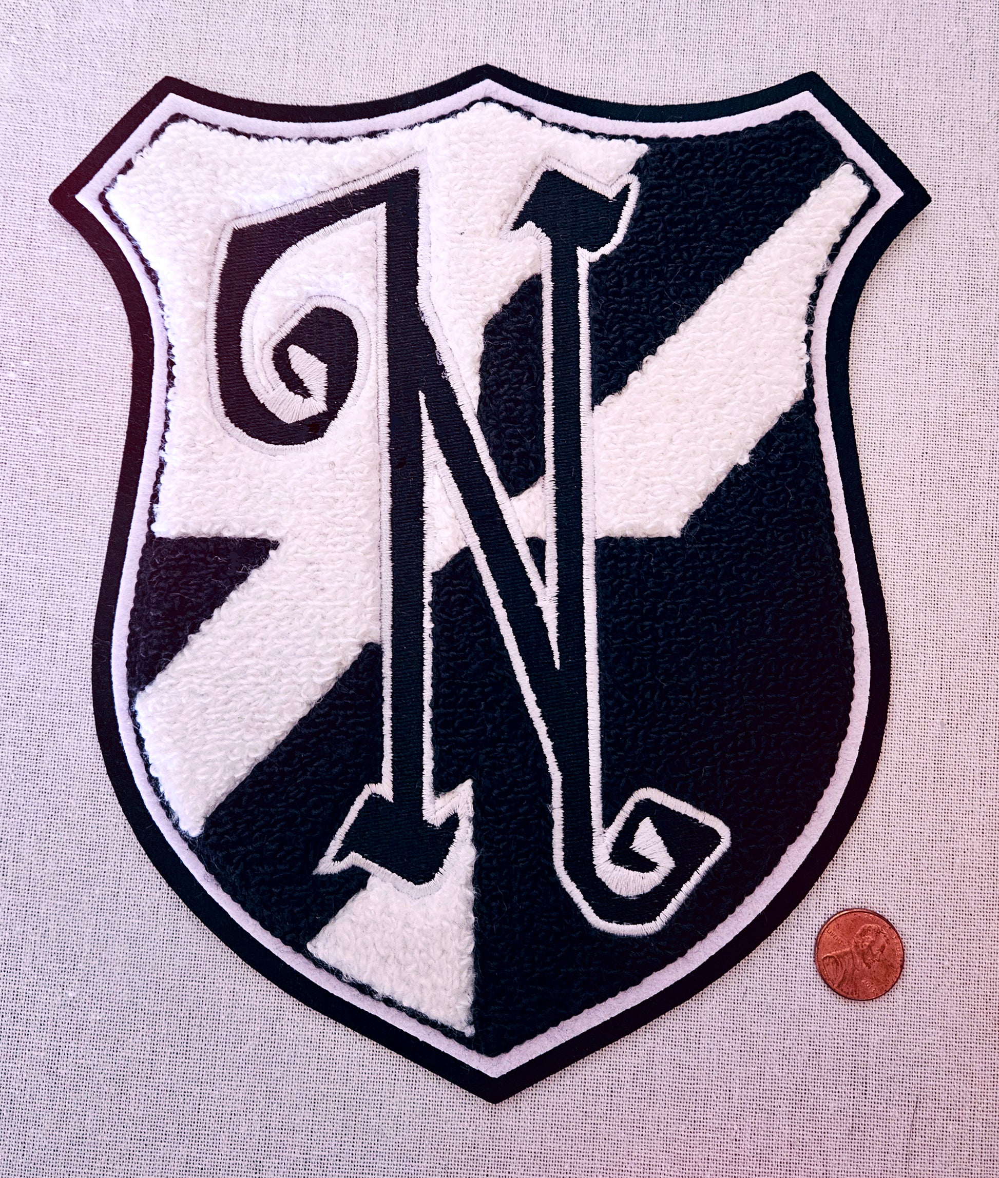 Chenille embroidered patch with no adhesive backing