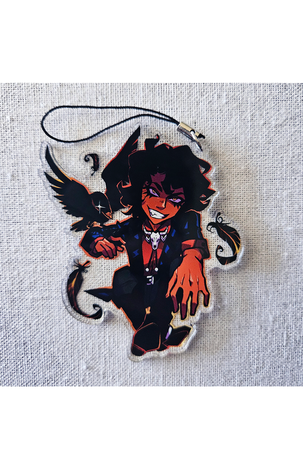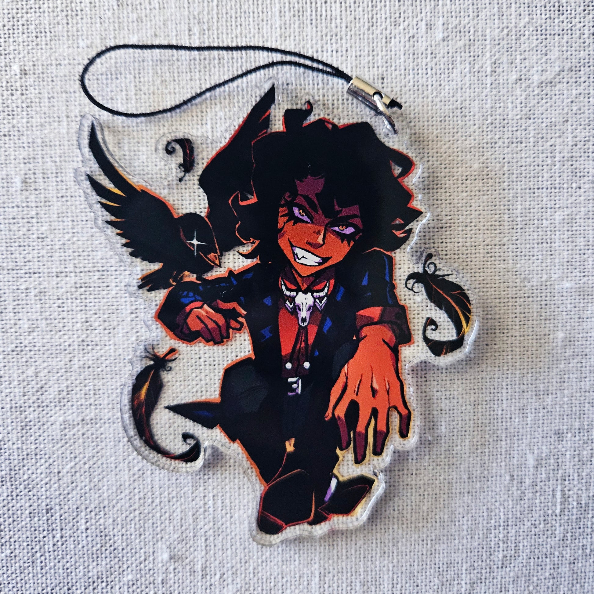 Double sided acrylic charm with cell-phone attachment